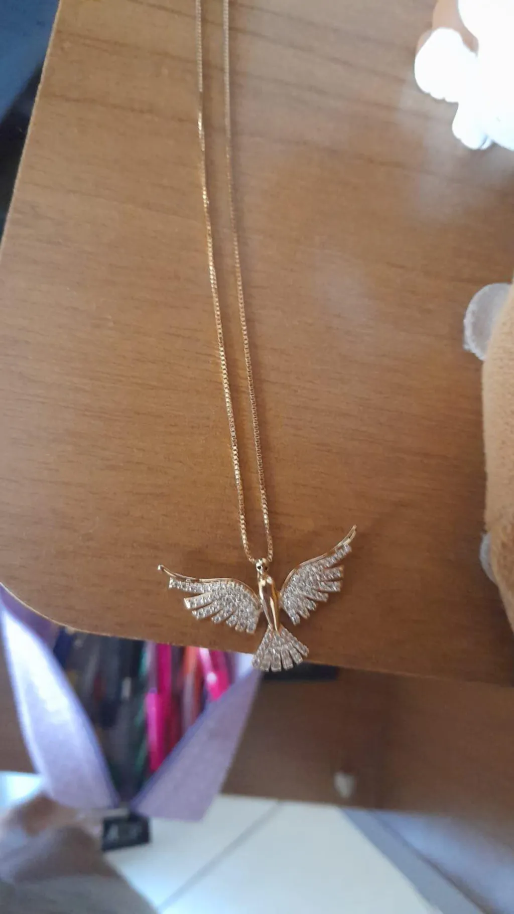 Uma joia que une fé e sofisticação. Este colar dourado apresenta um pingente delicadamente cravejado com zircônias brilhantes. O banho dourado confere um brilho atemporal, enquanto o design simboliza proteção, paz e espiritualidade. Ideal para quem busca carregar a fé com elegância no dia a dia ou presentear alguém especial com um significado profundo.